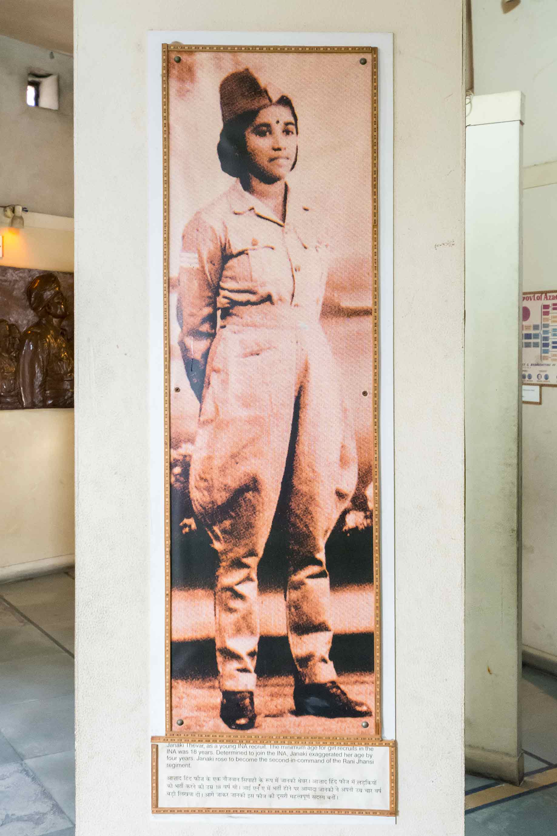 There are several panels showcasing the life of the Indian National Army. Medals and badges of men who served in the INA, newspaper clippings, and photographs of events related to Indian Independence struggle are present at this museum.