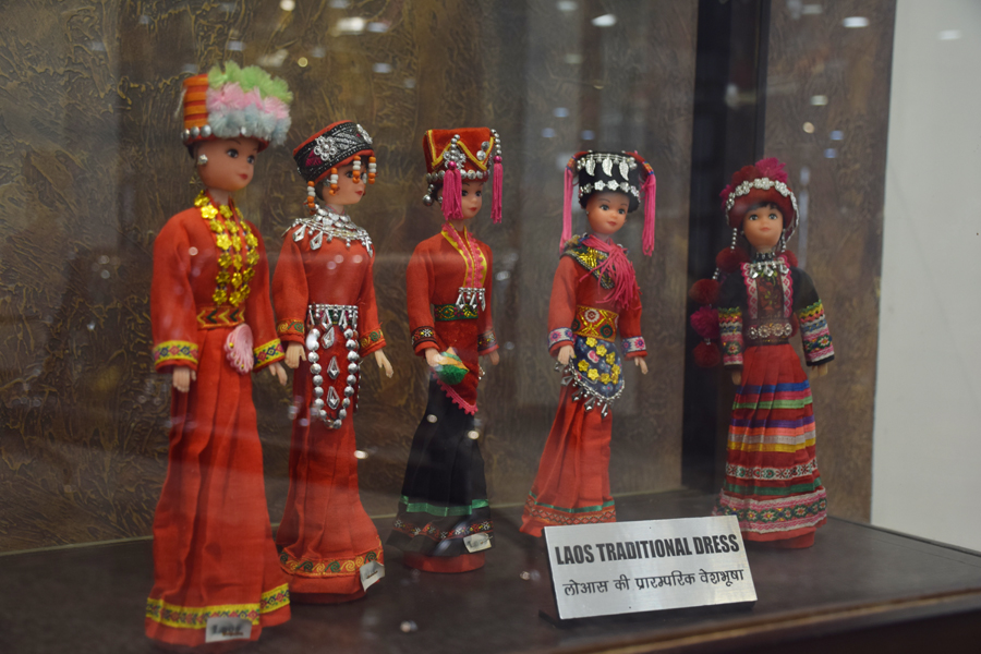 The doll collection of the museum displayed in five galleries is from about 40 different countries. The new wing of the museum, Savita Ranjit Singh Bhandar, is named after Bhandari’s parents. The museum houses Indian state dolls displayed in special apparel reflecting bridal wear, everyday clothing, and dance costumes. The traditional doll collection from Japan, most of which is made from wood, includes Kokeshi dolls, Namahage dolls, Kamakura dolls, Kanto Matsuri dolls, and Tanabata dolls. Dolls made from paper and whale teeth from Japan are also on display. Dolls adorning traditional attire from other countries such as Mexico, Italy, Turkey, Norway, Peru, Uganda, Burgundy, Mongolia and more attract visitor’s attention. The museum also has a section of English puppets and handcrafted wooden toys.