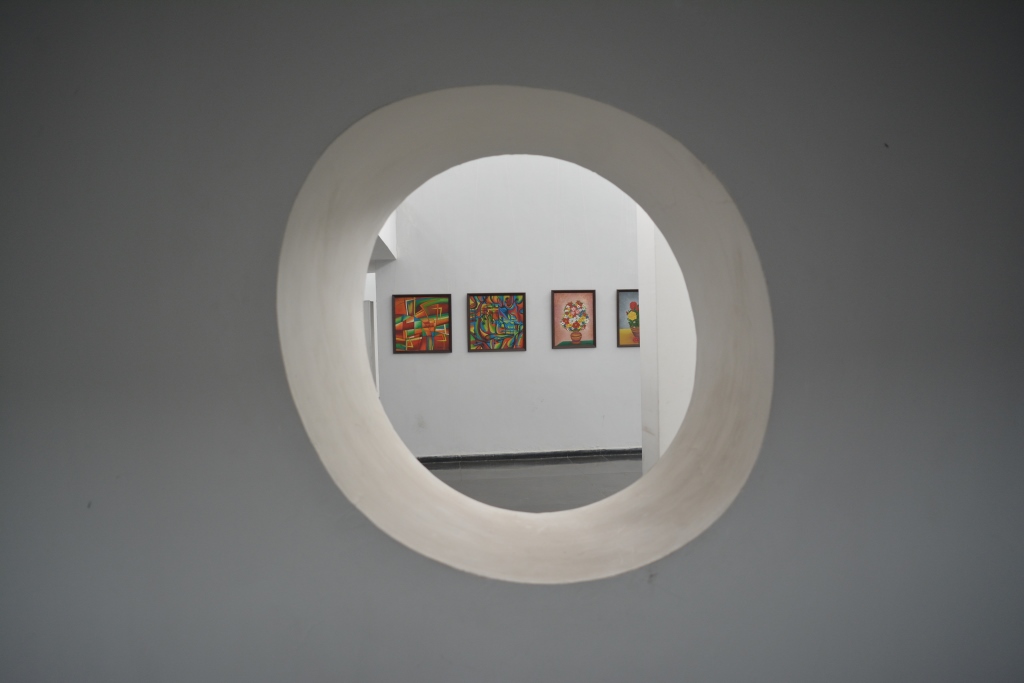 The Museum of Fine Arts is an integral part of the Department of Art History and Visual Arts (AHVA), Panjab University. The department was set up in 1962 to offer Post Graduate and PhD programs. The museum is a beautiful piece of architecture situated across the road in front of the fine arts department, and is adjacent to Gandhi Bhawan, a landmark building of the Panjab University. The layout of the Fine Arts Museum is in a series of small galleries encircling an open courtyard. Each gallery has an umbrella-shaped roof which is a typical characteristic providing an artistic bend to the otherwise utilitarian architecture. The building has two levels. The lower level approachable through the front gate is split into two parts. One part of it houses the permanent collection of contemporary art which is estimated to be 1,200 artefacts including paintings, prints, and sculptures of renowned artists of India like M.F. Husain, Aparna Caur, Dhanraj Bhagat, and Shiv Singh, etc.