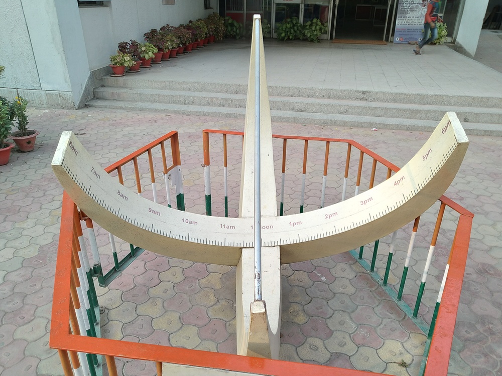 Sundial is a device that tells the time of day with the help of the apparent position of the sun in the sky.