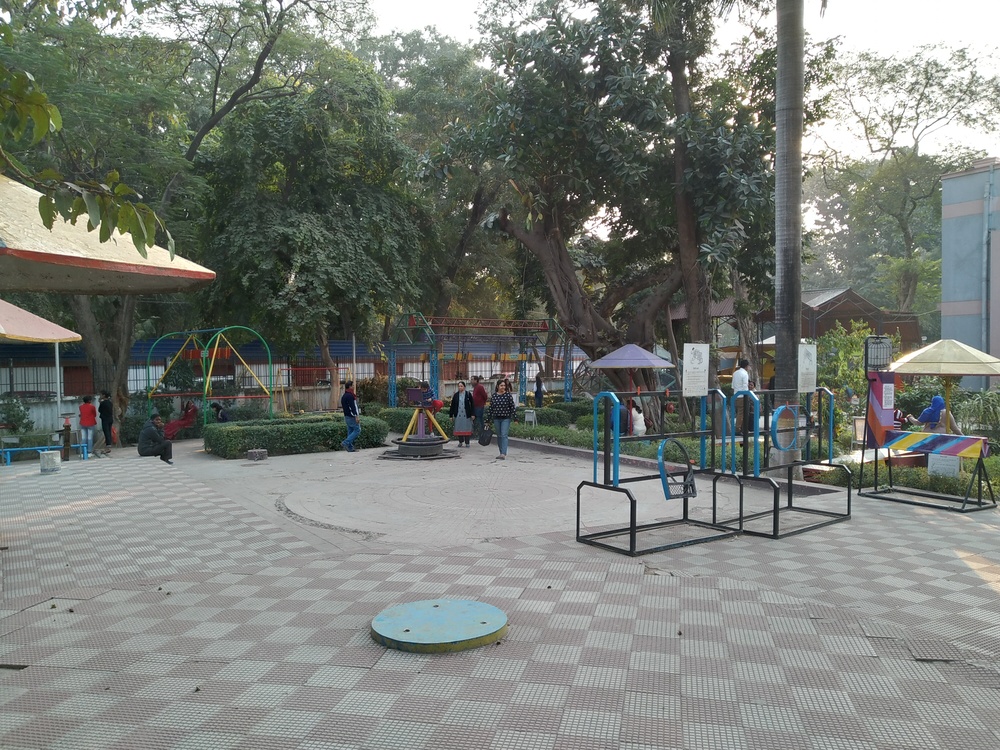 The park is equipped with various science models. It also has swings, see-saws, and cricket nets. It is popular, especially among kids.